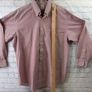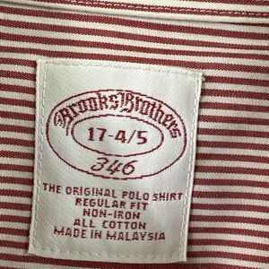 BROOKS BROTHERS 346 Dress Shirt Men 17 4/5 White Red Striped Cotton Non Iron