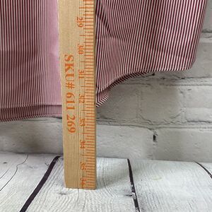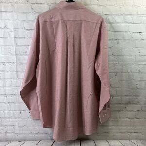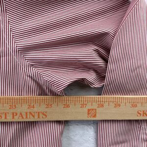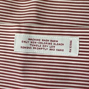 The red and white striped shirt has a solid pattern and a long sleeve design with round top cuff style. The shirt is machine washable and has a light fabric wash. It is a great addition to any designer, college, city, or classic themed outfit. This dress shirt is available in size 17 4/5 and is a regular size type. The shirt is perfect for men who want to look their best without sacrificing comfort.