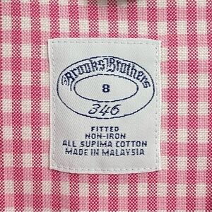 BROOKS BROTHERS / 346 Fitted No Iron Pink Gingham Long Sleeve Button Down Size 8