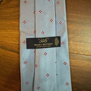 This Brooks Brothers tie showcases a sophisticated blue base adorned with red polka dots, offering a classic yet vibrant accessory for any formal occasion. Crafted with a smooth finish, it exudes elegance and style. Perfect for adding a touch of color to your ensemble.