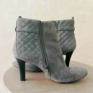 BROOKS BROTHERS 8.5 WOMENS GREY LEATHER QUILTED MOB WIFE DATE NIGHT FLIRTY HEELS