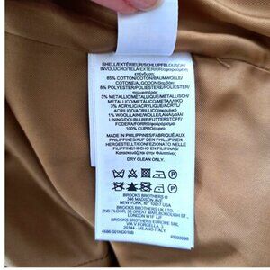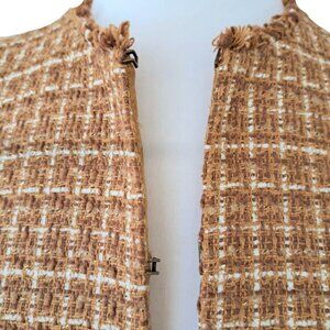 BROOKS BROTHERS Boucle Tweed Fringe Jacket Collarless Blazer Sz 4 Brown Tan Fall