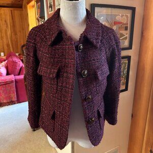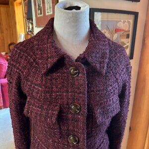 BROOKS BROTHERS Burgundy Maroon Cropped Jacket in Cotton-Wool Blend Boucle - 2