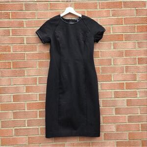 BROOKS BROTHERS Classic Essential Stretch Sheath Dress Leather Trim Size 6