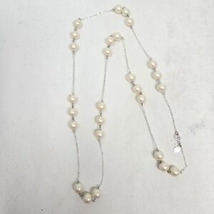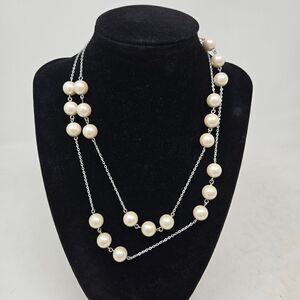 BROOKS BROTHERS Elegant Faux Pearl Station Necklace with Silver Chain