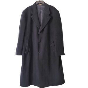 BROOKS BROTHERS Long Black Overcoat Mens Size 3XL Navy Blue 100% Wool #Classic #Professional #Formal