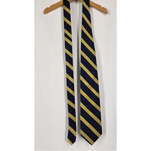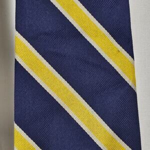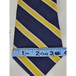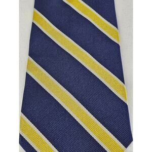 BROOKS BROTHERS MEN'S 4" NECK TIE NAVY BLUE YELLOW STRIPE WITH WHITE BORDER