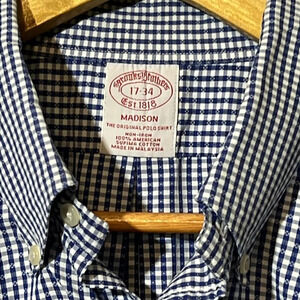 🌻 BROOKS BROTHERS ‘Madison’ Supima Cotton Navy Gingham LS Shirt sz. 17-34