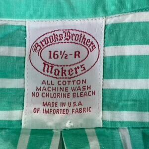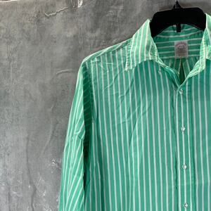 BROOKS BROTHERS Men's Green Striped Regular-Fit Button-Up Shirt SZ 16.5