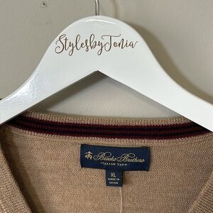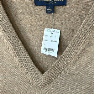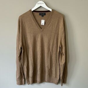 BROOKS BROTHERS Mens Merino Wool V Neck Sweater Tan Italian Yarn Sz XL NEW