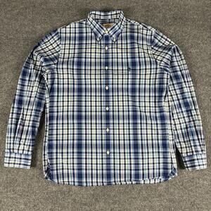 BROOKS BROTHERS Red Fleece Plaid Shirt Sz Large Button Front Blue
