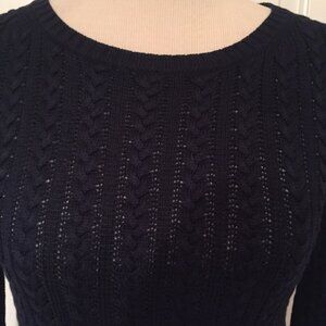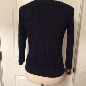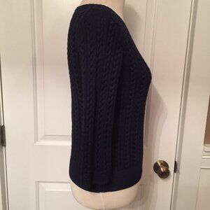 BROOKS BROTHERS WOMEN’S SWEATER CABLE KNIT CREW NECK 3/4 SLEEVE NAVY BLUE SMALL FIT (TAGGED M)
