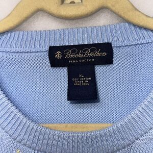 This Brooks Brothers sweater is a stylish addition to any wardrobe. With a classic argyle design in blue and white, this pullover is perfect for parties, casual outings, or business wear. The sweater is made of 100% Pima cotton and features a tight-knit fabric type, long sleeves, and a relaxed fit for comfort.