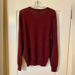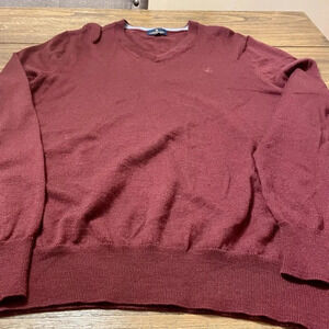 BROOKS BROTHERS Sweater Men's Size L 100% Extra Fine Merino Wool V Neck Burgundy