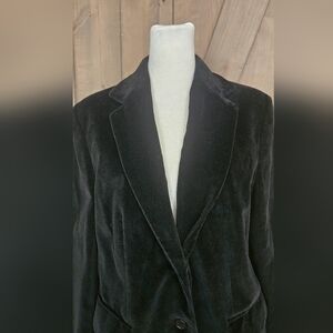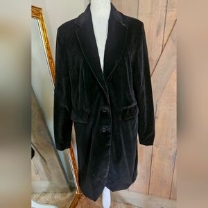 BROOKS BROTHERS Vintage Velvet Long Blazer Dinner Coat in Black. Size 10