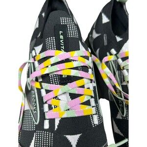 Color: Black & White Geometric Knit with pastel laces (pink, yellow, green, white)