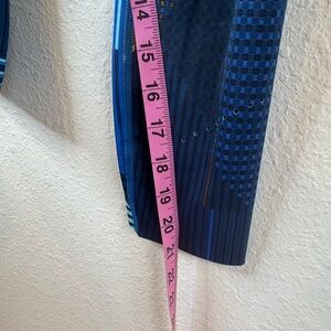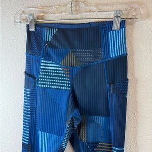 Excellent used condition, worn only once or twice. These Brooks Method tights feature laser-cut holes for ventilation and a geometric pattern.