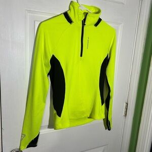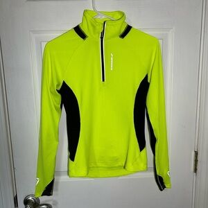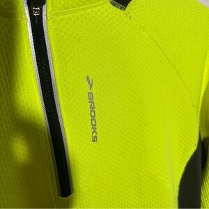Excellent condition, BROOKS running 1/2 zip long sleeve womens shirt size small neon high visibility neon with reflective accents.