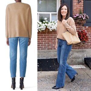 BROWN ALLAN Extra Fine Merino Wool & Yak Knit V-Neck Oversize Pullover Sweater L