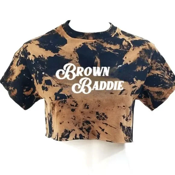 BROWN BADDIE Acid Wash, Distressed "Cropped" Crop Top Rock/Punk style Tee. Size: Small, Medium, Large and XL