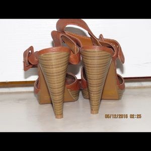 Brown heel. Great for a casual outfit. Comfortable, chunky heel. Don't miss out.