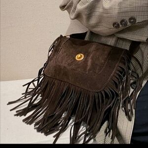 BROWN CHOCOLATE MEDIUM FRINGE BOHEMIAN BAG
