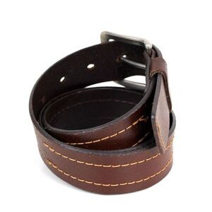BROWN GENUINE LEATHER STITCH CASUAL DRESS BELT