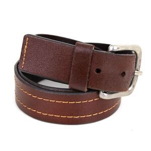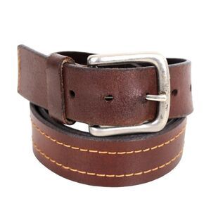 BROWN GENUINE LEATHER 1 3/8"Wd STITCHED CASUAL DRESS MEN'S BELT Sz M/34 (P35
