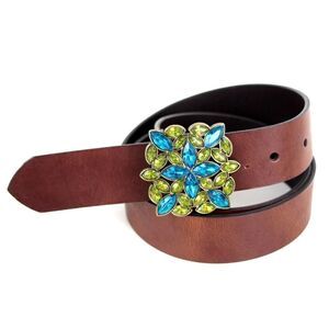 BROWN GENUINE LEATHER 1.25"Wd HOOK BUCKLE DRESS CASUAL WOMEN'S BELT Sz XL (I52