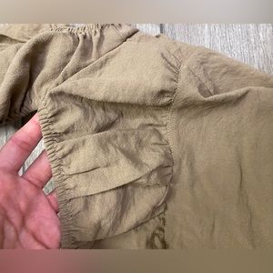Brown tan ruffle crop top with short sleeves and button down details. From Nasty Gal