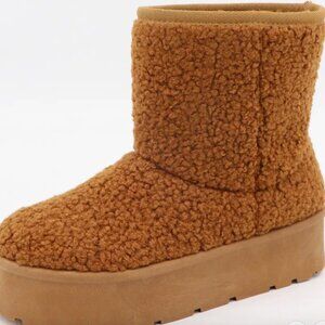 BROWN Shearling Faux Fur Mid Calf Platform Booties