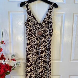 BROWN AND CREAM SLEEVELESS DRESS w BEADED CENTER by Enfocus