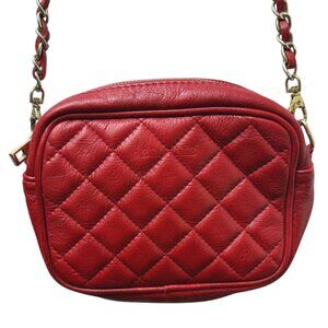 BROWNIE Red Leather Quilted Bag Chain Crossbody Made in Italy Handbag
