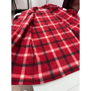 "BROWNSTONE STUDIO" Button Up Fuzzy Fleece Blazer Cardigan Jacket Red Plaid SZ L