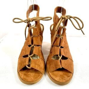 BROWN SUEDE DIBA SANDALS 3.5” HEEL SIZE 7.5