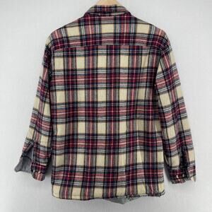 BRUCE JENNER Shirt Jacket Mens M Wool Blend Plaid Quilted Insulated Shacket Red