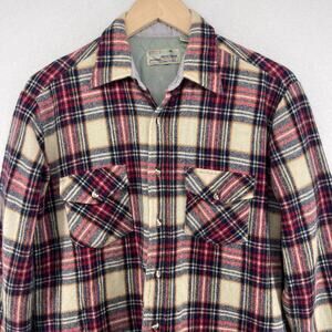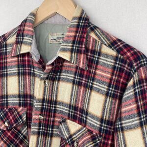 Vintage BRUCE JENNER Shirt Jacket Mens M Wool Blend Flannel Plaid Quilted Insulated Shacket Red