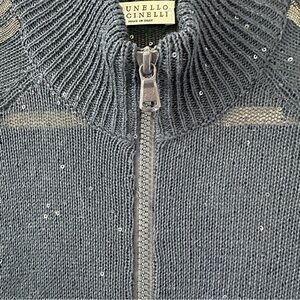 BRUNELLO CUCINELLI Mock Neck Navy Blue Sequin Zip-Up Sweater SZ S