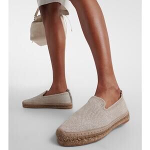 BRUNELLO CUCINELLI NEW Metallic Stretch-Knit Espadrilles Beige Slip On Women's 9B
