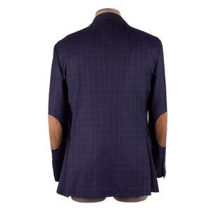 BRUNELLO CUCINELLI Navy Wool Checkered Tan Suede Elbow Patch Jacket size 50