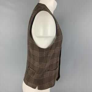 BRUNELLO CUCINELLI Size M Brown Plaid Linen Blend Buttoned Vest