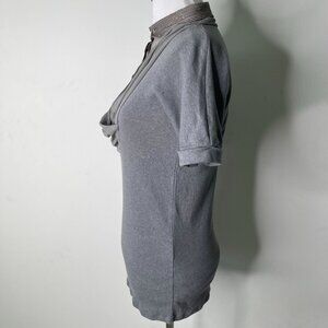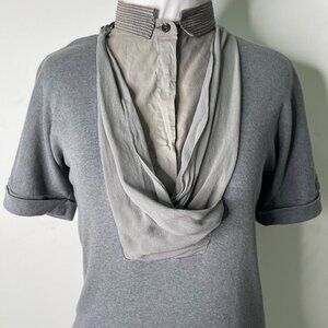 BRUNELLO CUCINELLI Women's Grey Short Sleeve Silk Button Down Shirt Size Large