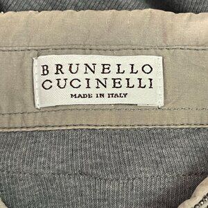 Pre-owned authentic BRUNELLO CUCINELLI Women's Grey Short Sleeve Silk Button Down Shirt Size Large. Aprox measurements: Armpit to armpit is 15" inches. Length is 25" inches. Has some marks. Please look at pictures for better reference. Let me know if you have any other questions. Happy Shopping! NAUG25. B15