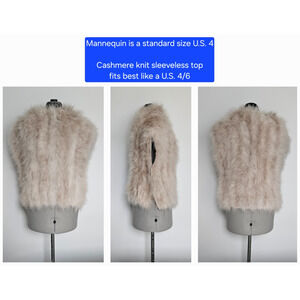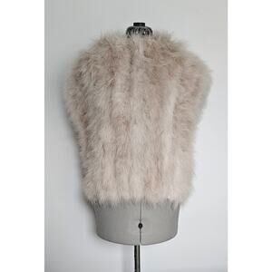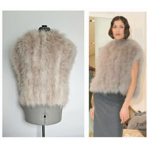 Stunning pullover knit cashmere sleeveless top with gorgeous ostrich feather accents throughout.