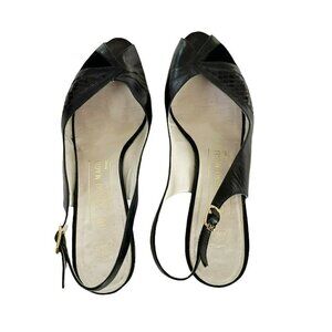 BRUNO MAGLI Black Leather Peep Toe Cone Heel Sling-Back Pumps Size 7.5 AA