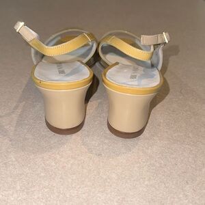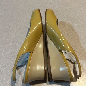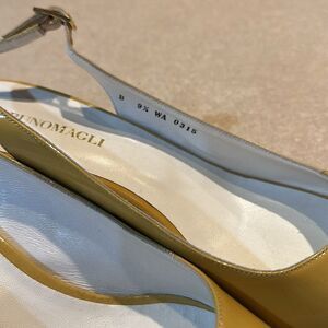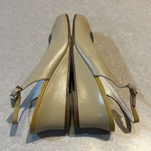 BRUNO MAGLI Luz Carrera Beige Leather Low Wedge Slingback Peep Toe Shoes