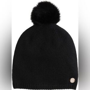 BRUNO MAGLI NWT CASHMERE KNIT BEANIE WITH SHEARLING POM-POM BLACK