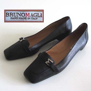 Women's beautiful BRUNO MAGLI ( Style: W02770 ) square toe flats with soft pebble leather upper, leather strap with silver-tone "M" buckle detail in front, tonal top stitching, lightly padded leather insole for extra comfort, leather lining and rubber sole / heel. Size: 7 1/2 B . Condition: New without the box. Note: Light creasing at upper.