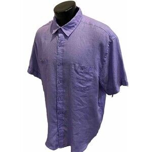 BRUNO NEW YORK MENS 100% Linen Short Sleeve Button Up Pockets Shirt XL LAVENDER