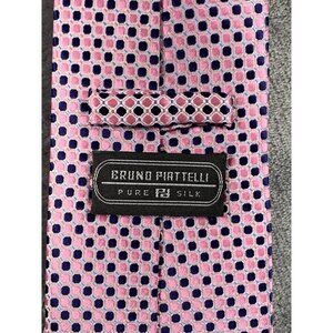 BRUNO PIATTELLI Men's Necktie Pink Navy Geometric Hand Made 100% Silk
